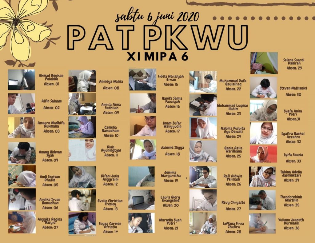 Sabtu / 6 Juni 2020, adalah hari ke 5 PAT yang merupakan hari terakhir bagi siswa kelas X dan XI tahun pelajaran 2029-2020 melaksanakan kegiatan Penilaian Akhir Tahun yang tetap diikuti para siswa dengan tetap semangat tinggi dan tentu suka cita karena merupakan hari terakhir PAT bagi mereka ikuti PAT secara daring di rumah masing-masing siswa dengan jadwal yang telah disusun oleh manajemen sekolah bidang kurikulum.