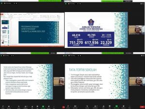 Rapat Dinas Guru & Karyawan SMAN 81 Jakarta untuk Semester genap Tahun Pelajaran 2020/2021, secara online Virtual Zoom, Pada Sabtu / 2 Januari 2021 mulai jam 09:00 – 11:30 wib dihadiri oleh Kepsek , ibu NIken, semua pimpinan Manajemen dan Staff Wakil, KaSubbag TU, Guru dan Karyawan. serta Kasubbag TU, menyampaikan laporan evaluasi serta kegiatan sekolah yang akan dilaksanakan pada Semester Genap Tahun Pelajaran 2020/2021.