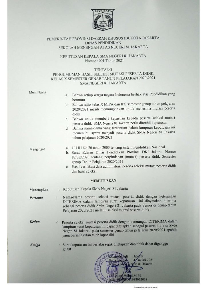 Pengumuman Hasil Seleksi Siswa Mutasi Semester Genap Tahun Pelajaran 2020/2021 Pengumuman Hasil Seleksi Siswa Mutasi Semester Genap Tahun Pelajaran 2020/2021